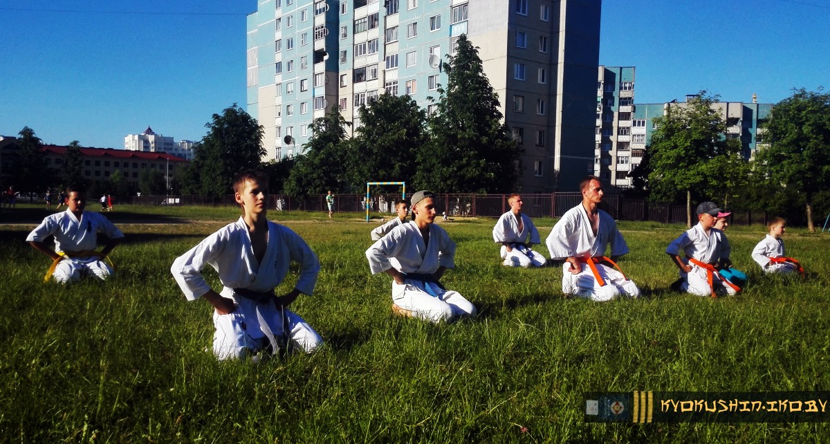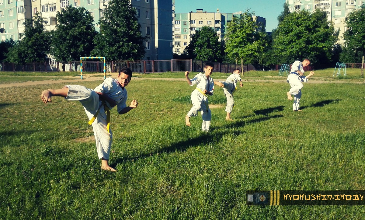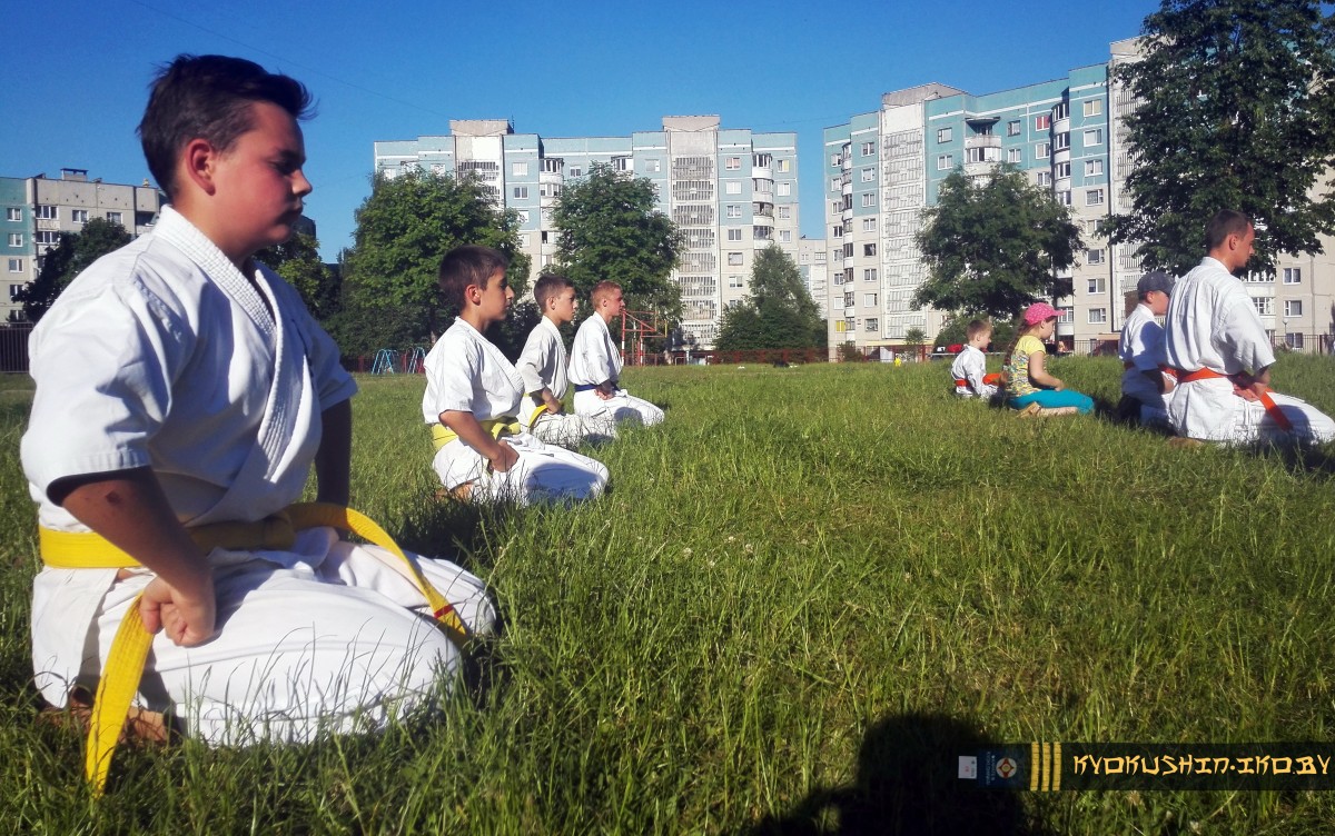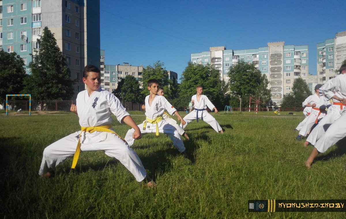 На данный момент 1-ая лагерная смена (дети от 6 до 11 лет) проходит очень хорошо и интенсивно.И, несмотря на то, что 12 инструкторов и 160 юных спортсменов уехали, на базе СШ №32 усердно идет подготовка к очередному экзамену (6-1 кю) с Семпаем Воробей Дмитрием Александровичем.