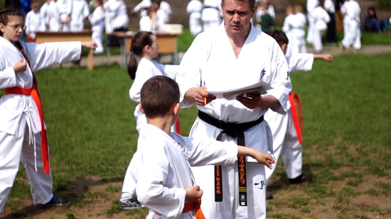 Ребята, которые планировали пройти экзамен на 7-8 кю, смогли показать свои умения после обеда. Довольно сложный для спортсменов экзамен не смогли пройти все, а именно 11 человек. Экзаменуемые продемонстрировали полученные на тренировках карате навыки, изученную технику, физическую кондицию. Было видно стремление к движению вперед, свойственное занятиям Киокушин каратэ.