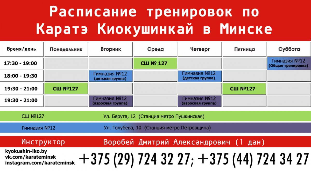 - СБ: 17.30 - 19.00 (общая тренировка)